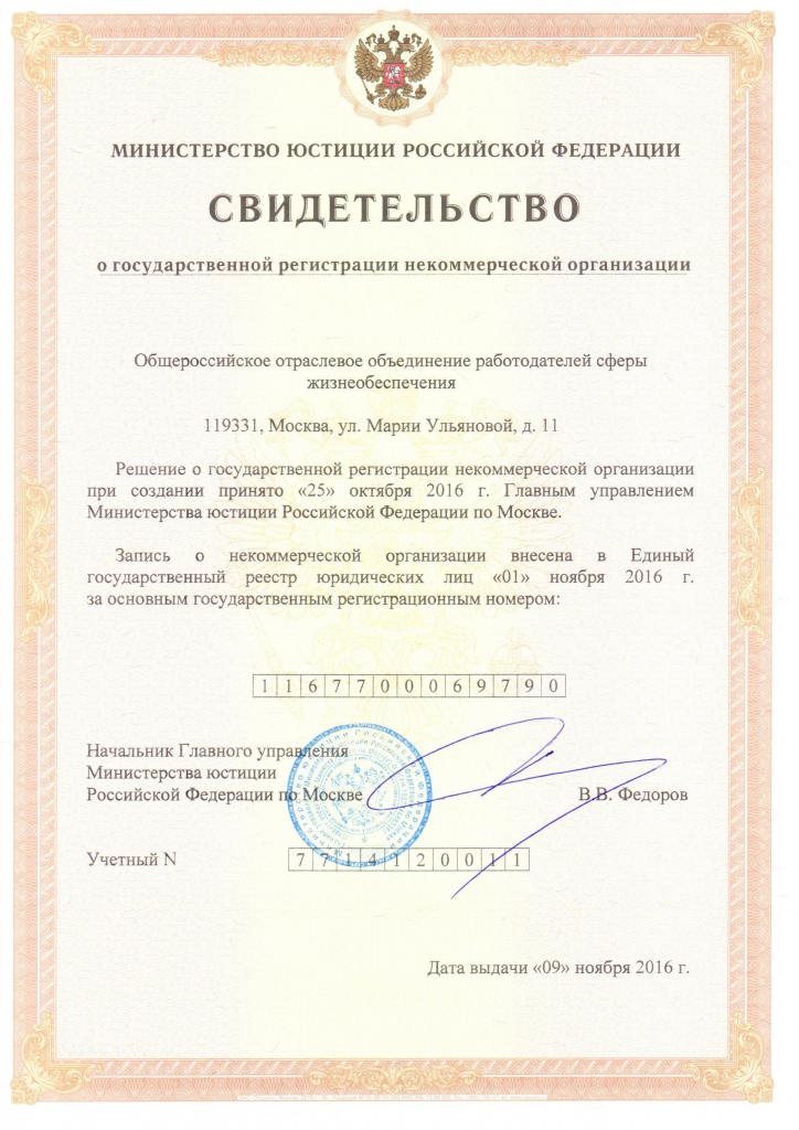 Свидетельство о регистрации минюст