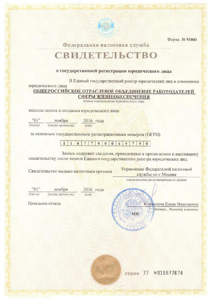 Свидетельство о регистрации юридического лица